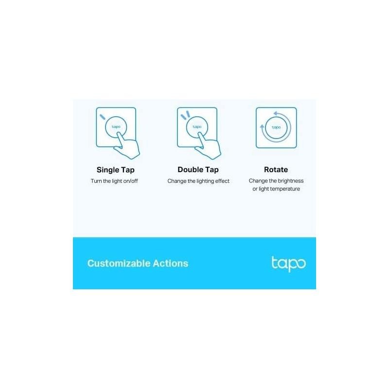 Regulador de intensidad remoto inteligente Tapo. Tapo S200D agrega control instantáneo local a sus luces inteligentes, simplificando la forma en que controla la iluminación del hogar. Compártalo con los miembros de su familia o invitados para establecer el ambiente de luz perfecto para su estado de ánimo. No te molestes en abrir una aplicación.