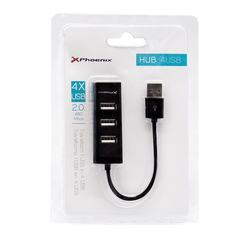 HUB USB PHOENIX 4 PUERTOS USB 2.0 BLACK