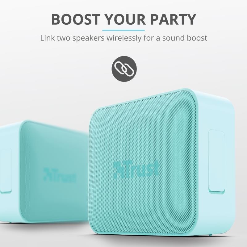 Lleva la música adonde quiera que vayas. El Zowy de Trust es un altavoz Bluetooth elegante y compacto que hará una fiesta de cualquier excursión, salida a la piscina o vacaciones. Es suficientemente pequeño para transportarlo cuando se está de viaje, es impermeable, tiene una batería que dura hasta 12 horas y un radiador pasivo de graves para dar un poco más de potencia a la música.