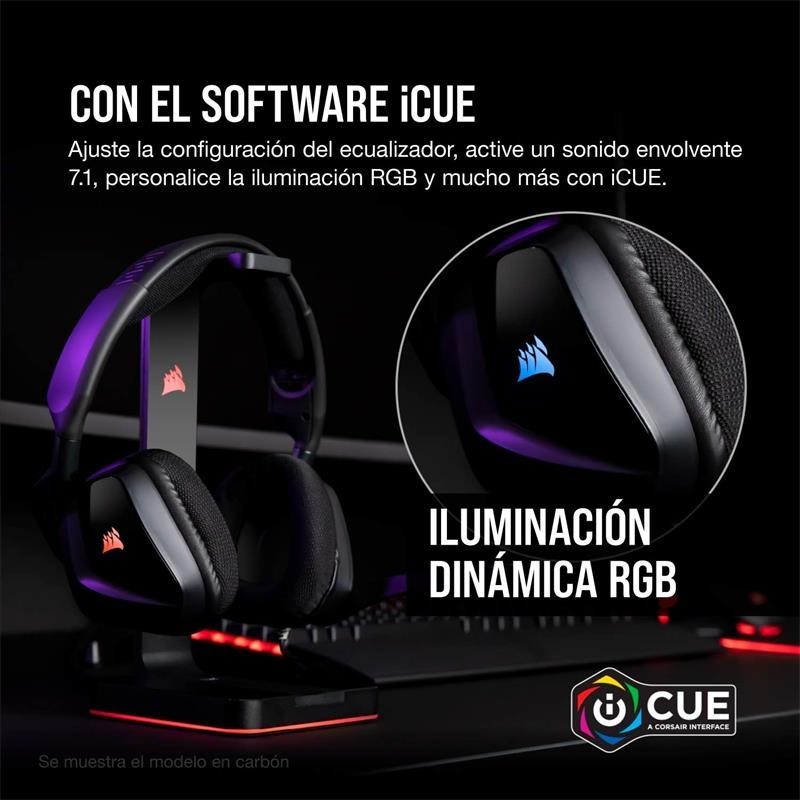 - Control inteligente, posibilidades ilimitadas. El software CORSAIR iCUE permite personalizar los ajustes del ecualizador de sonido, disfrutar de un sonido envolvente e inmersivo 7.1, controlar el ruido local y sincronizar la iluminación RGB con periféricos, refrigeradores, ventiladores y otros productos de CORSAIR compatibles.