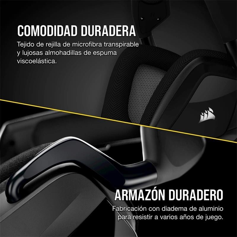 Sumérjase en la acción con los CORSAIR VOID RGB ELITE USB, equipados con transductores de audio de neodimio de 50 mm de ajuste personalizado que ofrecen un sonido envolvente 7.1 en PC. Tela con rejilla de microfibra y las almohadillas de espuma con memoria ofrecen una comodidad duradera. Un micrófono omnidireccional con indicador LED de silencio garantiza que los demás jugadores le oirán con una claridad de voz excepcional. Se le han realizado pruebas rigurosas y cuenta con el certificado Discord para una comunicación clara y un sonido excepcional.