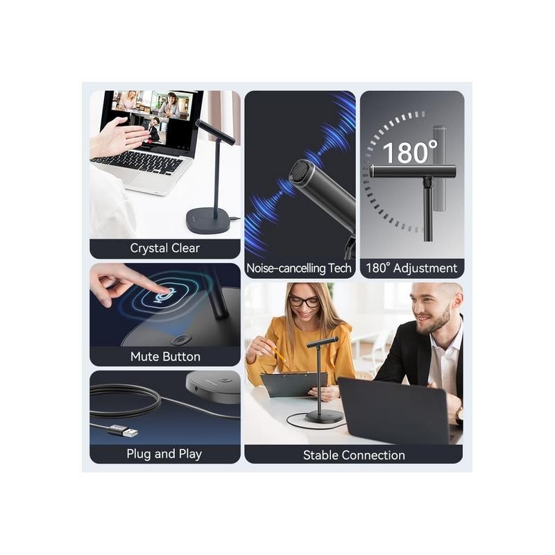 Micrófono USB-C versátil con cancelación de ruido, monitoreo en tiempo real y compatibilidad plug-and-play con múltiples dispositivos.