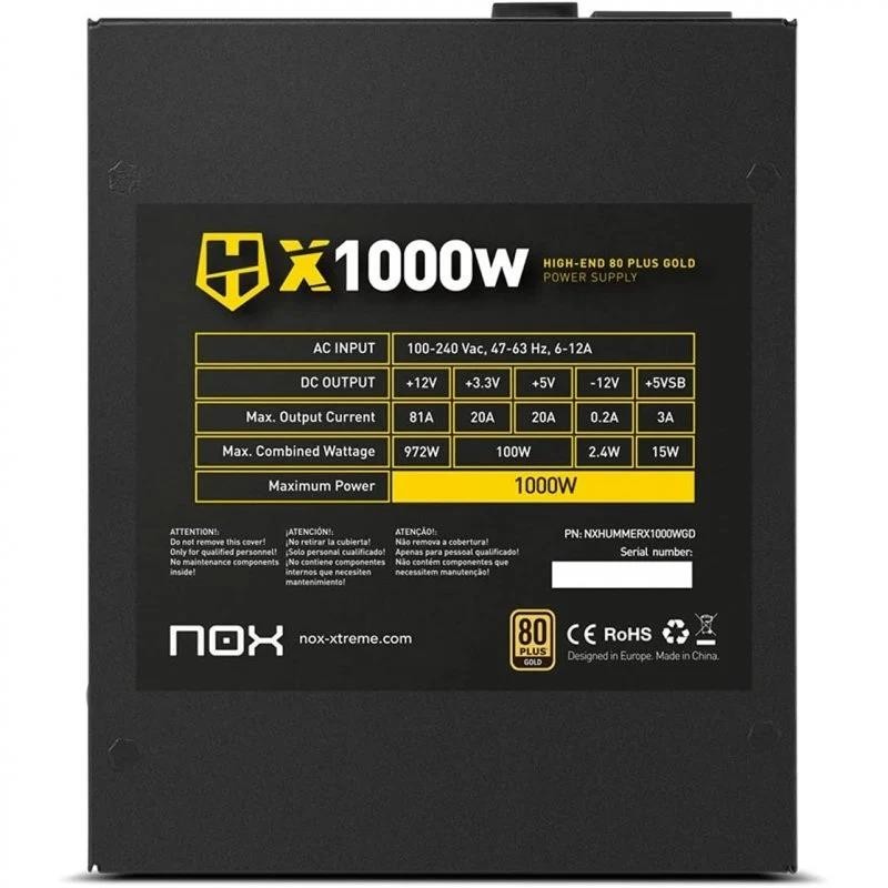 FUENTE DE ALIMENTACION NOX HUMMER X 1000W 80+ MODULAR GOLD