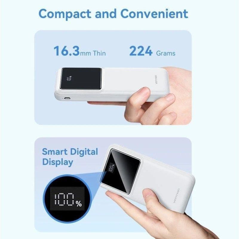 POWERBANK VENTION 10000MAH 2XUSB-A + USB-C LED DISPLAY 22.5W BLACK