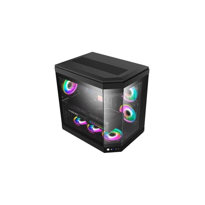 ¡Descubre el PC Gaming Hype, la cima del gaming en blanco y negro! Con diseño panorámico en vidrio templado, tres ventiladores Infinity ARGB Dual-Ring para óptima refrigeración, y capacidad para configuraciones de alta gama. ¡Hazte con lo mejor para tu experiencia gaming!