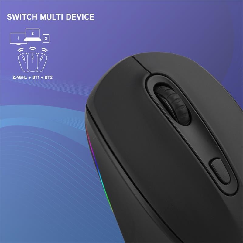 Ratón inalámbrico recargable con tecnología Bluetooth para varios dispositivos. 2,4 GHz + BT3.0 + BT5.0 con luces led.