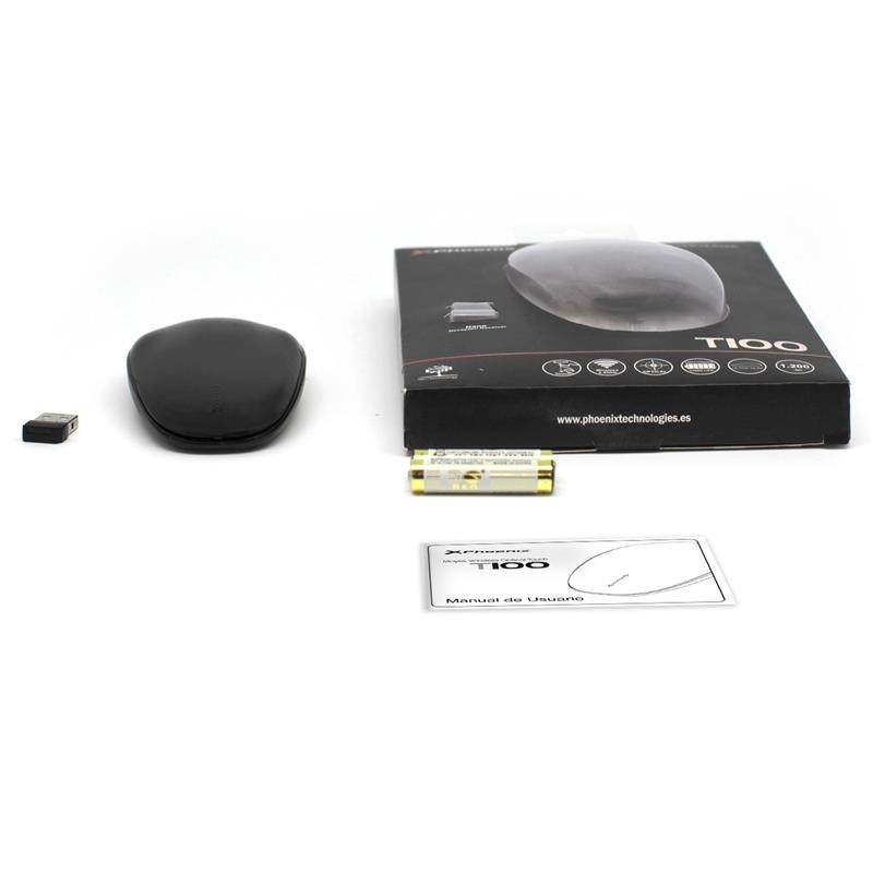 Este nuevo ratón óptico de Phoenix Technologies es el ratón con rueda scroll táctil más cómodo del mercado. Conéctalo con tu PC u ordenador portátil con el nano-receptor incluido en la caja y olvídate de cables: el T100 es inalámbrico y Plug&Play. Además, podrás almacenar el nano receptor dentro del ratón cuando no lo uses. Su diseño ergonómico garantiza la máxima comodidad para usuarios diestros y zurdos ¡Navegar por Internet nunca fue tan fácil!