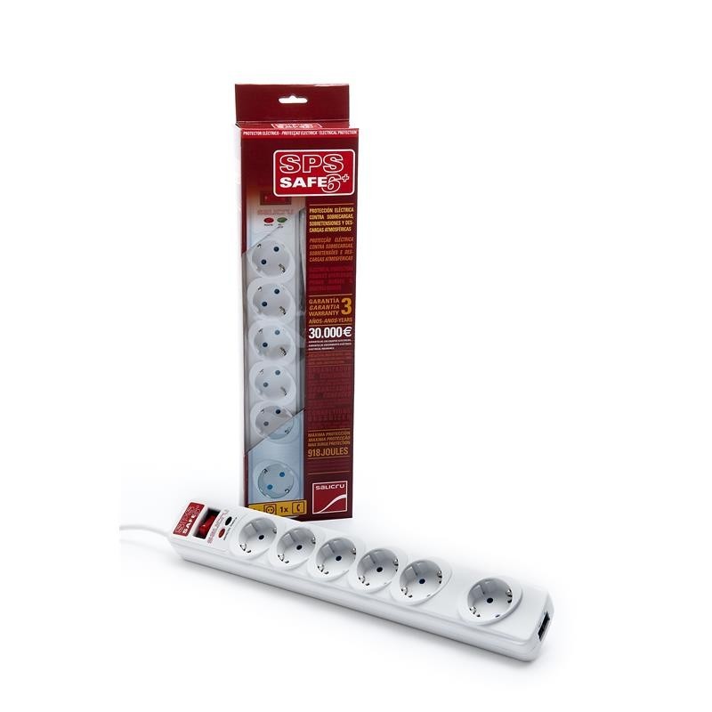 Salicru SPS.SAFE.6+, 918 J, 6 salidas AC, Tipo F, 230 V, 50 - 60 Hz, 2300 W