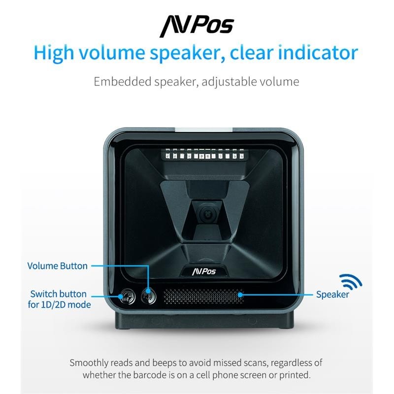 El AVPos BP760 es un lector de códigos de barras de alto rendimiento diseñado para ofrecer una lectura precisa y rápida de códigos 1D y 2D. Equipado con un sensor de imagen CMOS de alta calidad, este lector es capaz de capturar códigos incluso en condiciones difíciles, como aquellos que están mal impresos, dañados o tienen bajo contraste. Su robustez y su avanzada tecnología de escaneo lo hacen ideal para una amplia gama de aplicaciones, incluyendo retail, logística, y más.